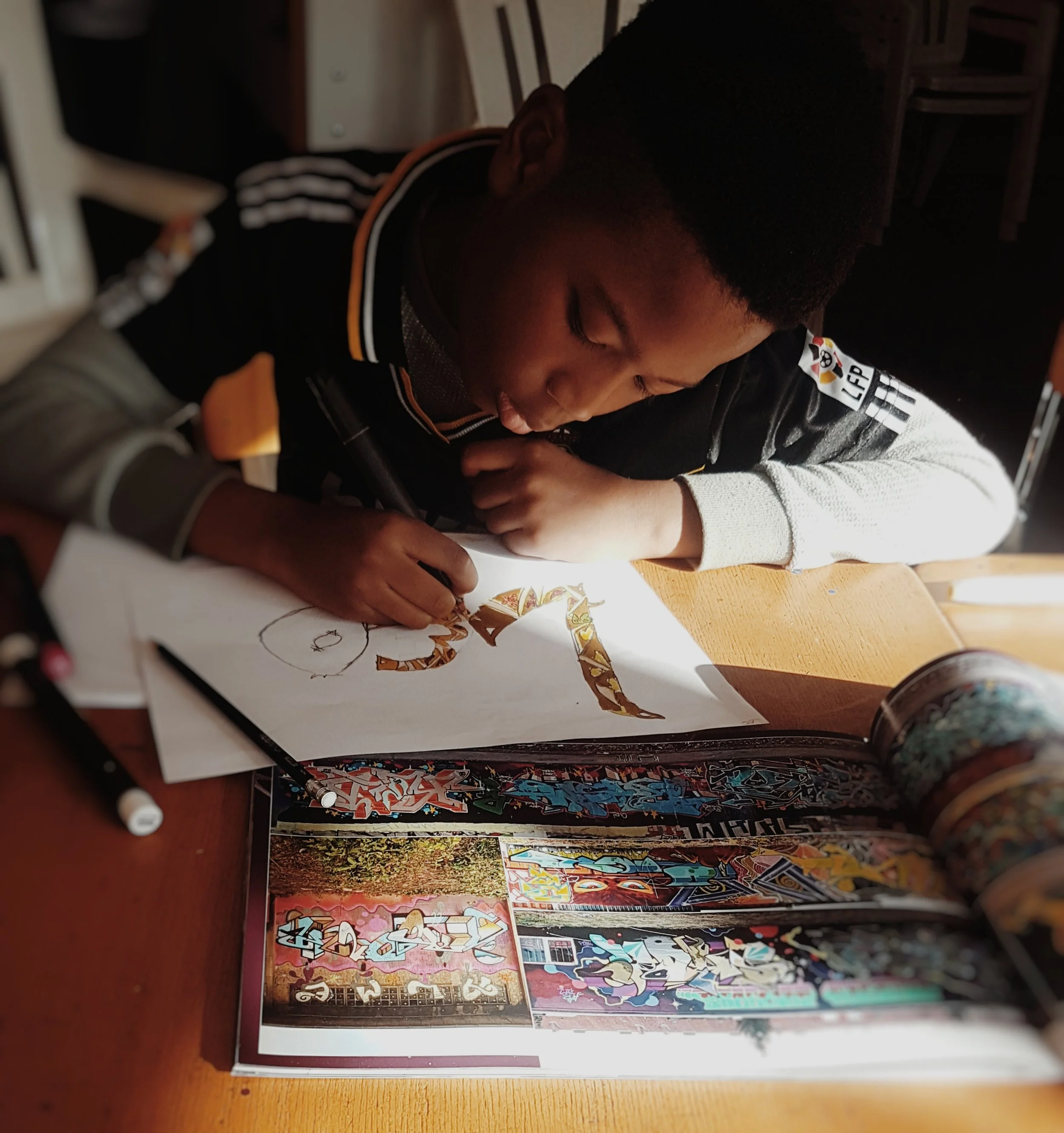 IN UNSEREN WORKSHOPS FINDEN SICH KLEINE GRUPPEN ZUSAMMEN, UM GEMEINSAM DAS THEMA GRAFFITI ZU BELEUCHTEN. IM VORDERGRUND STEHT HIER DAS KREATIVE AUSEINANDERSETZEN MIT BUCHSTABEN. EIN GEFÜHL FÜR FARBEN UND FORMEN SOLLEN GEWECKT WERDEN. ZUNÄCHST GESCHIEHT DAS IN FORM VON SKIZZEN UND EXPERIMENTIEREN AUF PAPIER: DAFÜR STEHEN UNTERSCHIEDLICHE MEDIEN ZUR VERFÜGUNG. UNTER ANLEITUNG PROFESSIONELLER SPRÜHER*INNEN ERHALTEN DIE TEILNEHMENDEN EINEN ERSTEN EINBLICK IN DIE KUNSTFORM GRAFFITI. IM ZWEITEN SCHRITT GEHT ES IN DIE PRAXIS. DIE TEILNEHMENDEN BESUCHEN GEMEINSM MIT DEN DOZENT*INNEN DIE LEGALEN WÄNDE BERLINS (HALL OF FAMES). HIER WERDEN SKIZZEN UND ENTWÜRFE AUS DEM VORANGEGANGENEN TEIL UMGESETZT, UM ERSTE ERFAHRUNGEN MIT DER DOSE ZU SAMMELN.